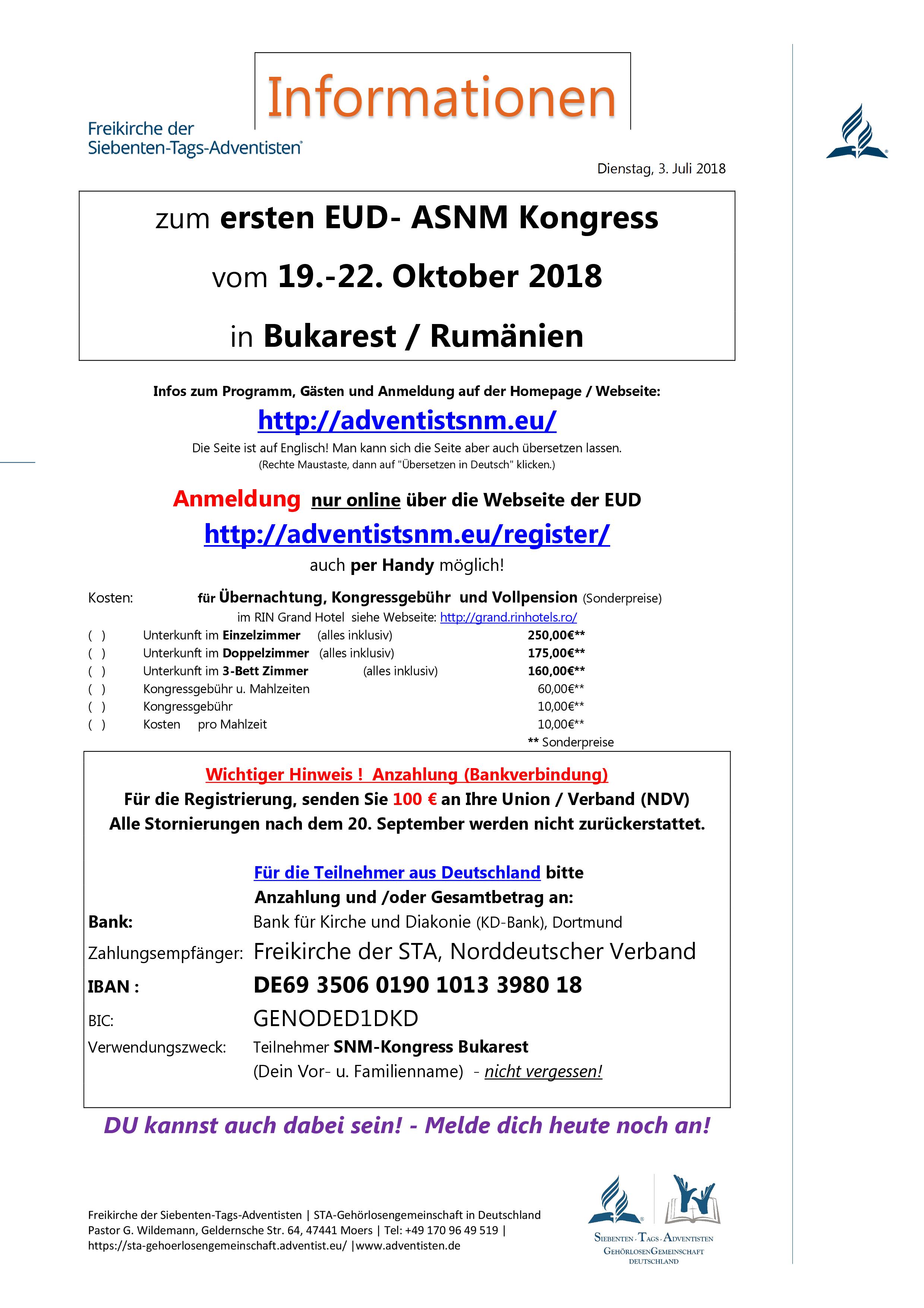 Verwendungszweck: Teilnehmer SNM-Kongress Bukarest